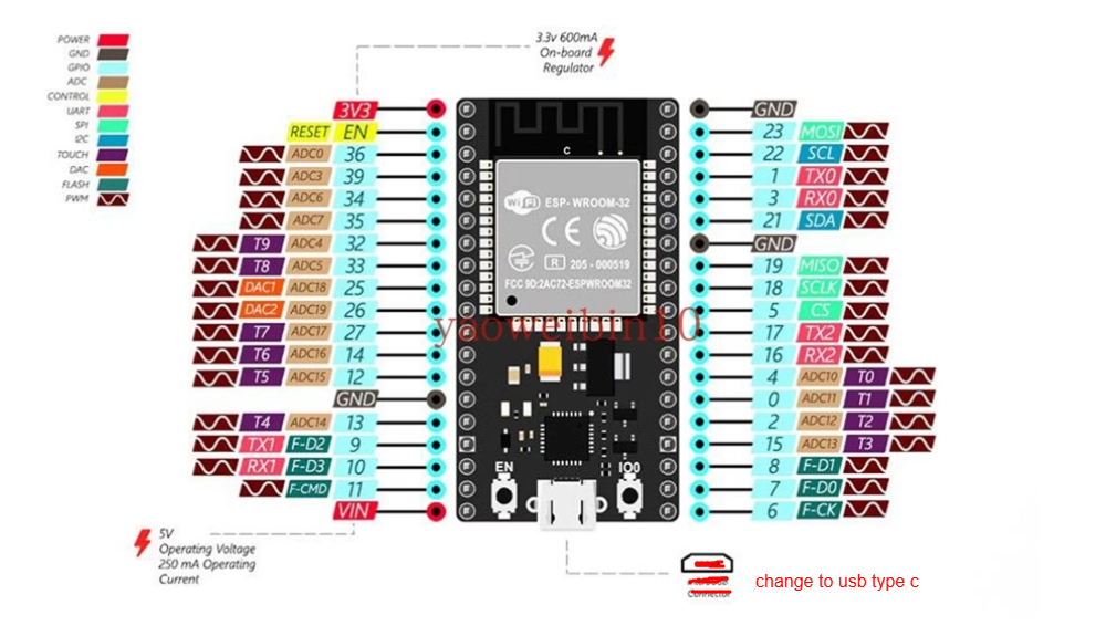 The ESP32 USB Type-C DevKitC V4 is a versatile development board based on the powerful ESP32-WROOM-32 or ESP32-WROVER module (varies by model). Designed for IoT prototyping and embedded applications, it features a USB Type-C connector for easy programming and power supply, along with a rich set of peripherals for flexible development.