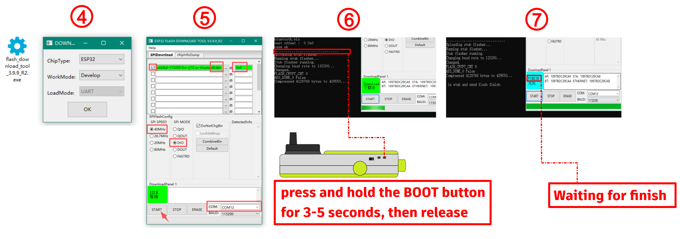 Step 6: After "......" appears, press and hold the BOOT button for 3-5 seconds, then release